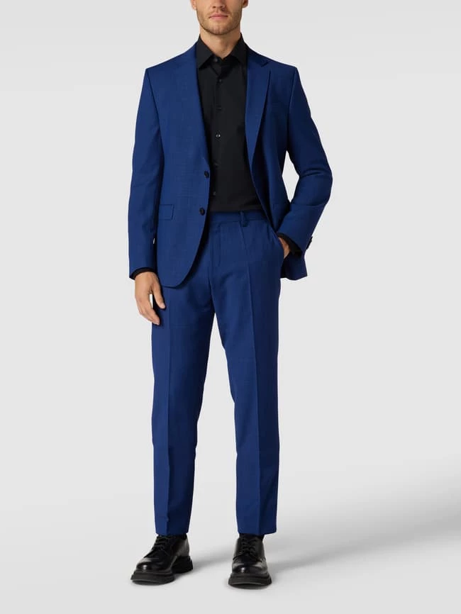 Die Anzughose von BOSS ist aus einem Material-Mix mit Schurwoll-Anteil gefertigt und im Regular Fit geschnitten. Sie zeigt sich mit Bundfalten und Leistentaschen am Gesäß.