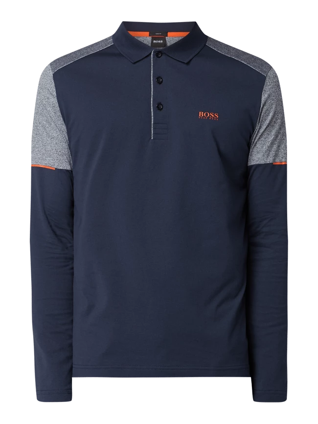 BOSS Athleisurewear Slim Fit Poloshirt Mit Langen Ärmeln Modell ‚Pleesy‘ – Marineblau