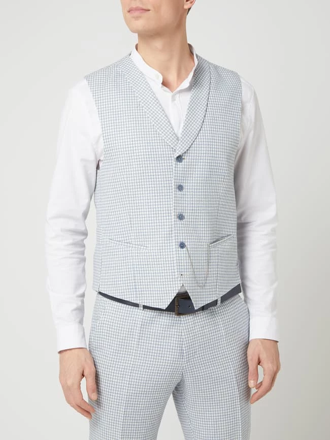 Die Weste von CG Club of Gents ist aus einem Baumwoll-Leinen-Mix gefertigt. Sie kommt im Slim Fit mit Pepita-Dessin, Schalkragen und Leistentaschen.