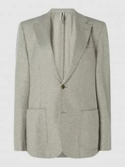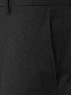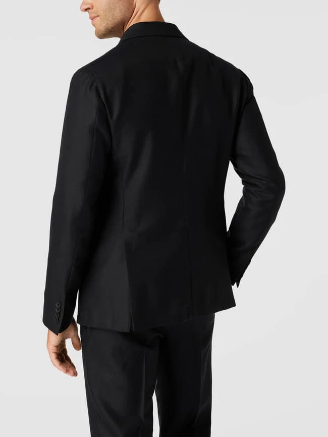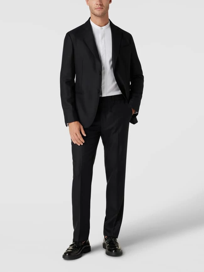 Der Anzug von Emporio Armani ist aus einem Material-Mix mit Woll-Anteil gefertigt und gerade geschnitten. Er zeigt sich mit Strukturmuster, Jacke mit Paspeltaschen sowie Hose mit Bügelfalten.