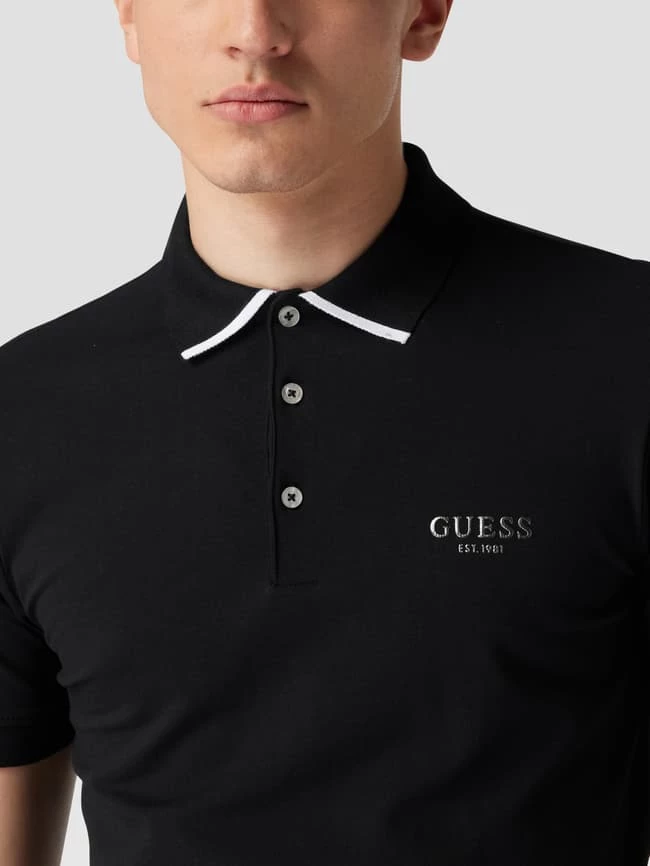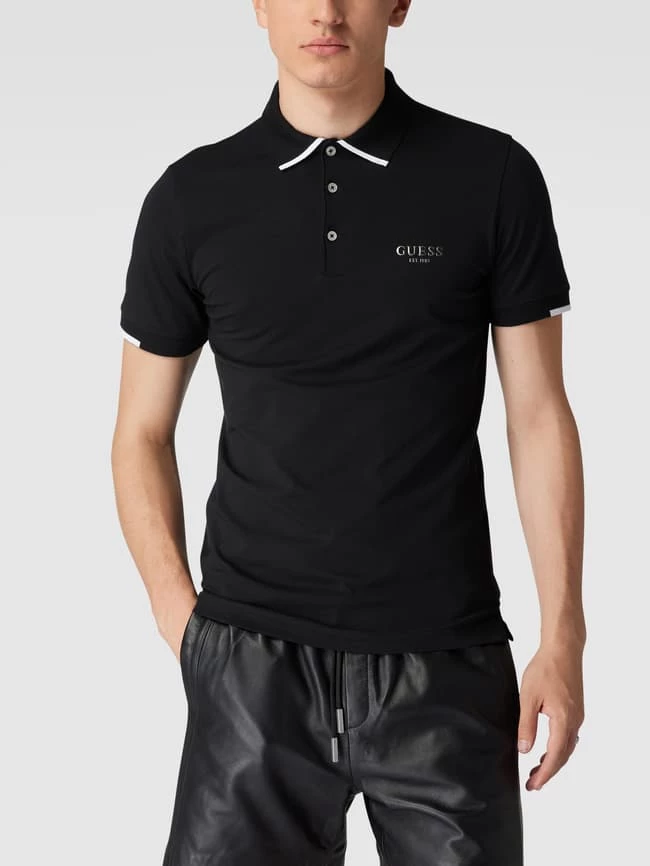 Das Poloshirt von GUESS ist aus einem Baumwoll-Elasthan-Mix gefertigt und gerade geschnitten. Es kommt mit Label-Print, Kontrast-Details, Polokragen und gerippten Abschlüssen.