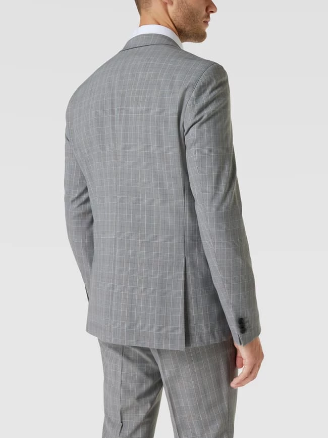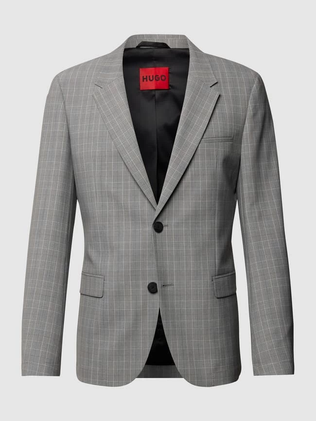 Das 2-Knopf-Sakko von HUGO ist aus einem Schurwoll-Mix gefertigt und im Extra Slim Fit gehalten. Es zeigt sich mit Glencheck-Muster, Reverskragen und Brustleistentasche.