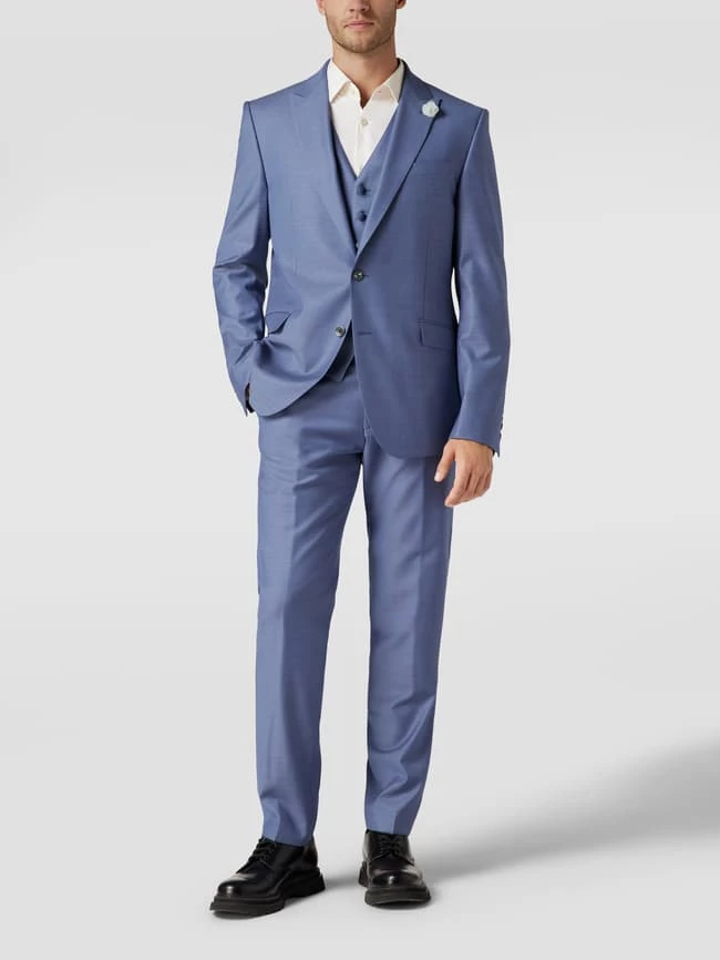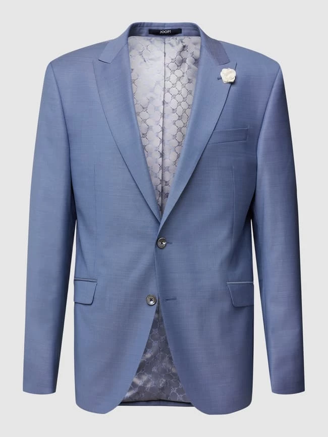 Das Sakko von JOOP! ist aus einem Woll-Elasthan-Mix gefertigt und kommt im Slim Fit. Es zeigt sich mit Pattentaschen, Reverskragen und abnehmbarer Ansteckblume sowie 2-Knopf-Leiste.