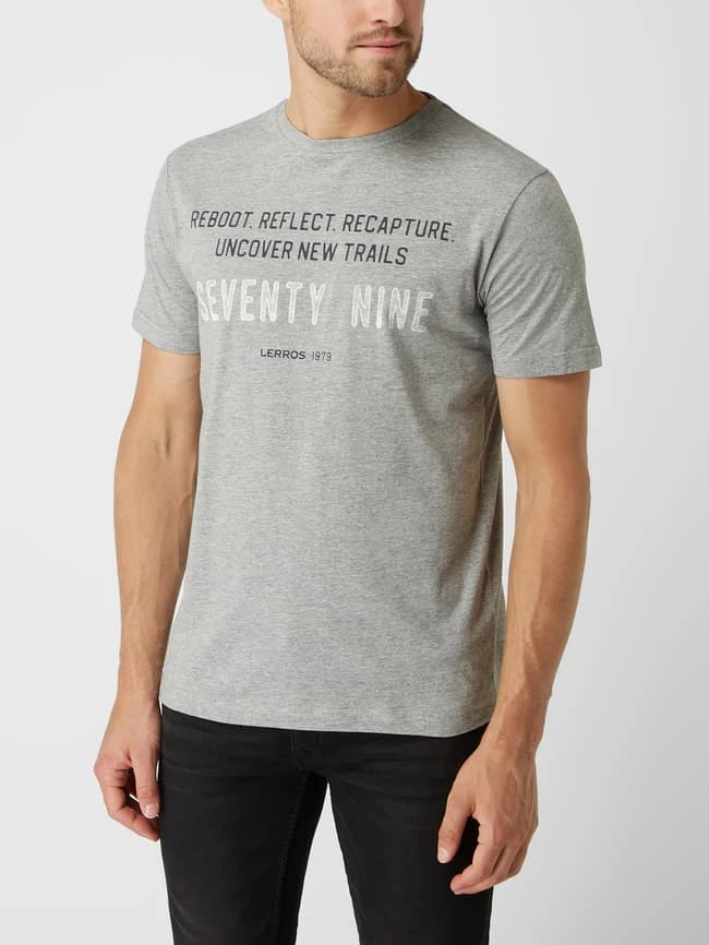 Lerros T-Shirt Aus Baumwolle – Mittelgrau Meliert