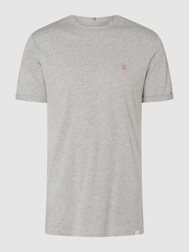 Les Deux T-Shirt Mit Stickerei Modell ‚Norregaard‘ – Hellgrau Meliert