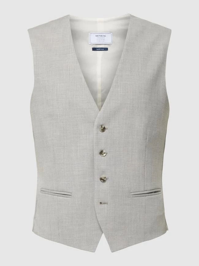 Die Weste von MCNEAL ist aus einem Viskose-Mix mit Elasthan-Anteil gefertigt und gerade geschnitten. Sie zeigt sich mit Paspeltaschen und durchgehender Knopfleiste.