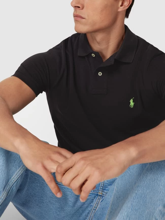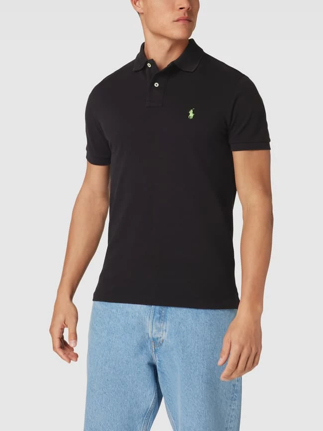 Polo Ralph Lauren Slim Fit Poloshirt Mit Label-Stitching – Schwarz