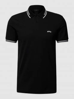 BOSS Athleisurewear Slim Fit Poloshirt Mit Kontraststreifen Modell ‚Paul Curved‘ – Schwarz