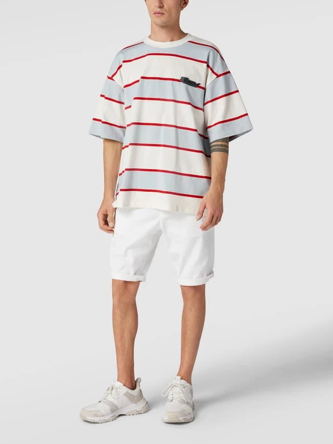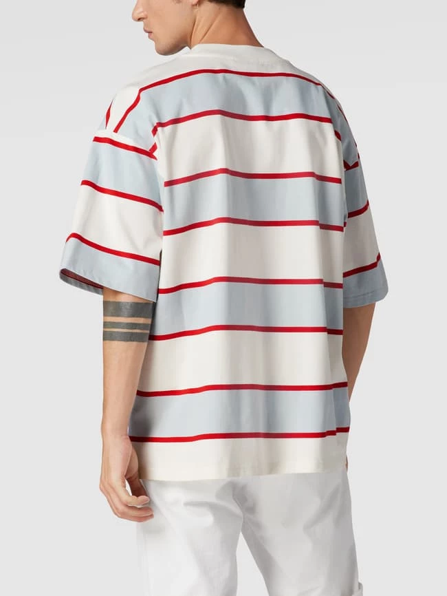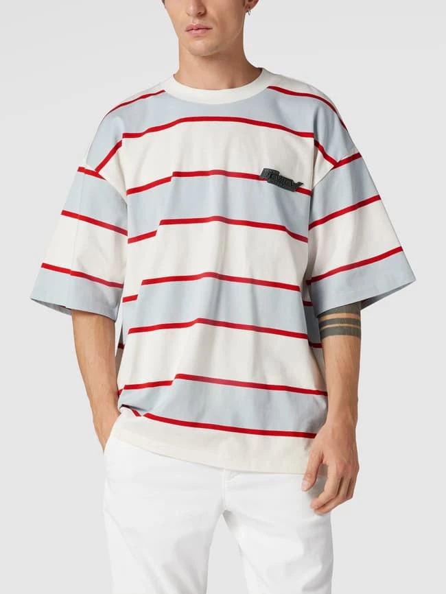 Das T-Shirt von REVIEW ist aus reiner Baumwolle gefertigt und locker geschnitten. Es kommt mit Streifenmuster, Label-Patch und geripptem Rundhalsausschnitt.