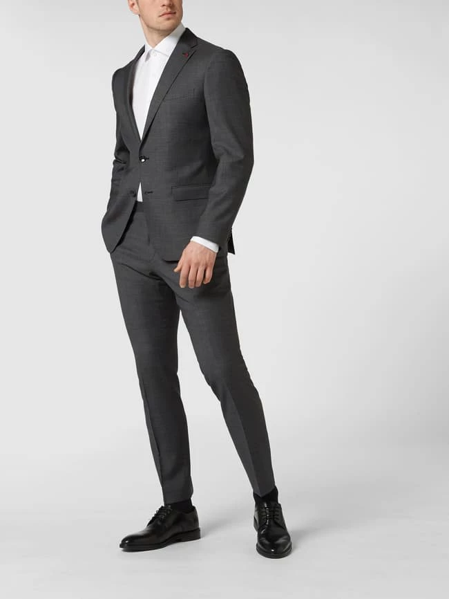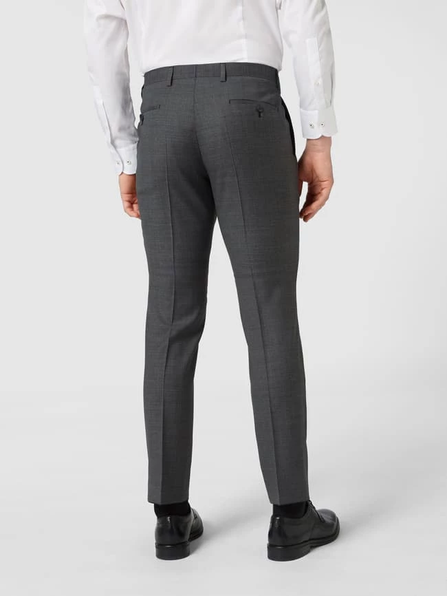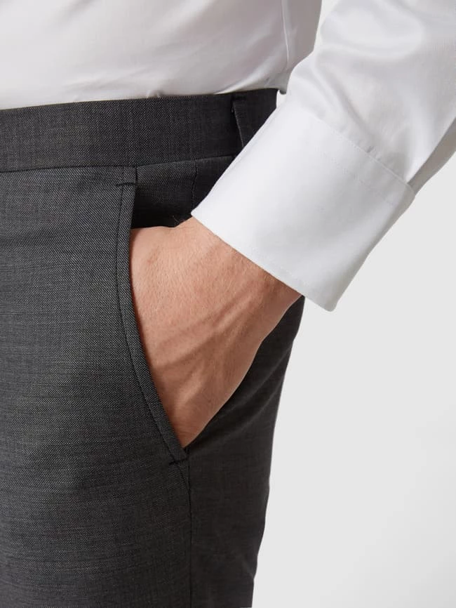 Die Anzughose von ROY ROBSON ist aus reiner Schurwolle mit Natural Stretch gefertigt und zulaufend geschnitten. Sie zeigt sich mit französischen Eingrifftaschen und geknöpften Leistentaschen am Gesäß. Die Modelle der ‚Techno Suit‘-Serie zeichnen sich durch ein wasserabweisendes Obermaterial aus, das ein angenehmenes Hautklima schafft und zugleich eine hohe Bewegungsfreiheit garantiert.