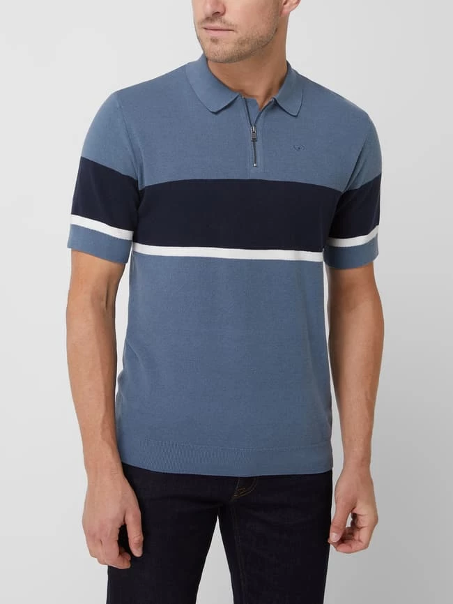 Das Poloshirt von TOM TAILOR ist aus reiner Baumwolle gefertigt und gerade geschnitten. Es zeigt sich mit feinem Maschenbild, Blockstreifen und kurzem Reißverschluss.