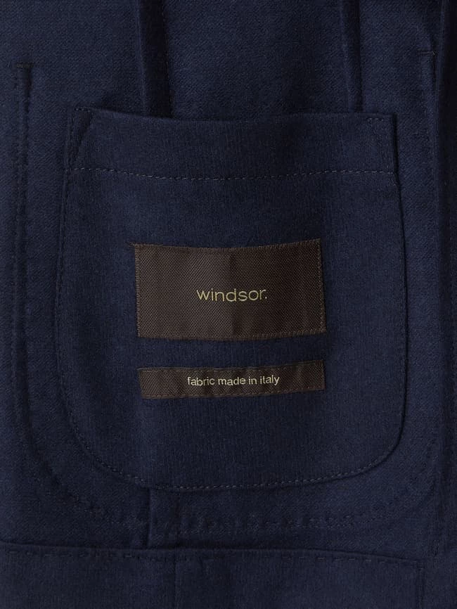 Das Sakko von Windsor ist aus einer Kaschmirmischung gefertigt. Es zeigt sich im Shaped Fit mit fallendem Revers, aufgesetzten Taschen und Kissing Buttons.